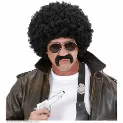 Pruik, Undercover Agent Zwarte Krul Met Snor En Bril