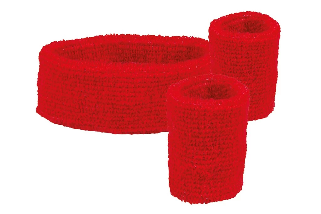 Zweetbandjes set van 3 stuks. Te verkrijgen in de kleuren zwart, wit, rood, geel, groen, roze. Ook verkrijgbaar in oranje.